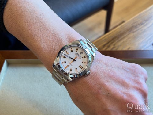 K様 いつもクォーク上野本店をご利用いただきまして誠にありがとうございます。生産終了してから6年程経過しますが年々市場から姿を消しつつあるホワイトダイヤルのミルガウス。厚みのあるケースにずっしりとした重みで重厚感も感じていただけるなか、爽やかな印象も演出できるかと思います。普段使いの時計としてガンガンお使いいただけましたら幸いです。今後とも宜しくお願い申し上げます。