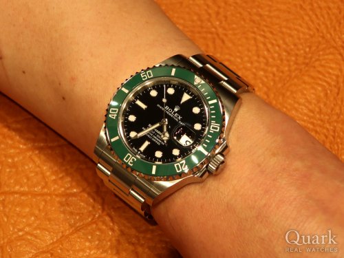 K様、いつもクォーク仙台店をご利用いただきまして誠にありがとうございます。K様がお選びになられた『Ref.126610LV』は、2003年に登場した通称『グリーンサブ』シリーズでは第三世代となるセラミック製グリーンベゼルと引き締まったブラックダイヤルの配色が絶妙なカラーバランスの大人気モデルでございます。ビジュアル面での良さと併せて、内部機械には最新ムーブメント『Cal.3235』を搭載しており、旧型と比較してパワーリザーブが約1日延長、日付変更時間帯の廃止など、内外どちらもアップデートがされた実用性に優れたモデルです。これから末永くご愛用いただけましたら幸いでございます。また、お褒めのお言葉をいただきまして重ねて心より厚く御礼申し上げます。今後もK様のご期待に応えられるよう、日々精進して参ります。尚、ご使用に際して気になる点がございましたら、しっかりサポートさせていただきますので、お気軽にお申し付けくださいませ。どうぞ、今後とも変わらぬご愛顧を賜ります様、よろしくお願い申し上げます。