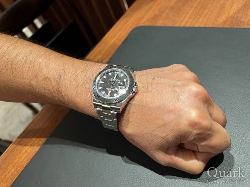 I様 この度は数ある時計店からクォーク名古屋店をご利用いただき誠にありがとうございます。ご購入いただきました『Ref.216570』黒文字盤は2011年に発表されたエクスプローラーⅡでございます。基本デザインは、前モデル(Ref.16570)のデザインを一新しました。ケース径が40mmサイズから42mmになった事により存在感がアップ。それに伴い細部の大型化、24時間針が赤色からオレンジになったりブラッシュアップが図られている人気のモデルです。渋さが引き立つ黒文字盤でI様にピッタリのお時計になると存じます。また当店でブレス洗浄、タイムチェックも無料で行っておりますので、お近くにお越しの際は遊びにいらしてくださいませ。お使いいただく上で何かご不明な点等ございましたら、また久保までご相談ください。今後とも末永いお付き合いの程よろしくお願いいたします。