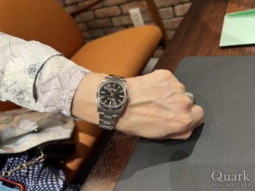 S様 この度は数ある時計店からクォーク名古屋栄店をご利用いただき誠にありがとうございます。ご購入いただきました『Ref.124200 OYSTER PERPETUAL』はケース幅は34mmとメンズサイズとしては少し小さめではありますが、女性も使い易いモデルとなります。スタンダード系モデルのシングルバックルは腕に馴染みやすく軽めのバックルで人気の個体でございます。このモデルはシンプルなロレックスをお探しのS様にピッタリのお時計だと存じます。またブレス洗浄、タイムチェック、相談、無料で行っておりますので、お近くにお越しの際は遊びにいらしてくださいませ。お使いいただく上で何かご不明な点等ございましたら、また久保までご相談ください。