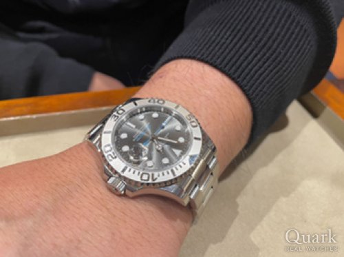 H様 この度はクォーク名古屋栄店をご利用頂き、誠にありがとうございます。H様、遂に念願のロレックスになりましたね。着けている時のH様がとても笑顔で嬉しそうな表情をされていて私としても嬉しく感じました。ご自身への最高の誕生日プレゼントになりましたね。ヨットマスターならではのプラチナベゼルの輝きは高級感に溢れるラグジュアリーなスポーツモデルです。スリムなサイズで収まりも良く、これから様々なシーンで末永くご愛用頂けると存じます。今後も御時計のご相談など御座いましたら、ご遠慮なく私にお申し付けくださいませ。今後とも末永いお付き合いの程、宜しくお願い致します。