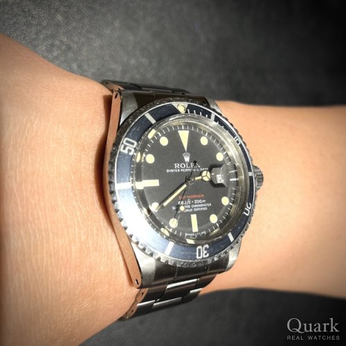 Ref.1680 赤サブを探しており、良い雰囲気で、非常に良い個体と出会えました。 ベゼルのエイジングとブレスの整合性にこだわりたいと以前から思っておりました。 その中でも特にブレスレットの巻きブレスが良くなじみ、ヴィンテージらしさが気に入りました。 また、ゴーストベゼルではなく、ネイビーチェンジをこだわり抜いて探しました。 良いお買い物が出来ました。ありがとうございます。