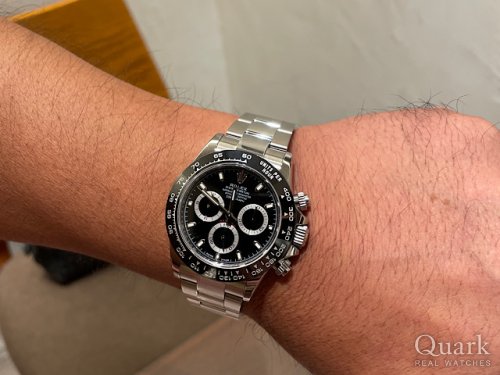H様 この度は数ある時計店の中からクォーク上野本店をご利用いただきありがとうございます。念願のDAYTONA Ref.116500LN(黒)のご購入おめでとうございます!惜しまれながらも生産中止となってしまったこちらのモデルは2016年から2023年まで生産された人気のモデルとなります。セラミック製で非常に硬く、耐傷性や耐蝕性に優れたベゼルを採用しており、プライベートやビジネスシーンで活躍する事間違いなしかと存じます。生産初期のモデルは数も少ない為、大切にご使用いただけますと幸いです。ブレスレットの洗浄及び調整も無料で行っておりますので、お近くにお越しの際は遊びにいらしてくださいませ。お使いいただく上で何かご不明な点等ございましたら、また林までご相談ください。今後とも末永いお付き合いの程よろしくお願いいたします。
