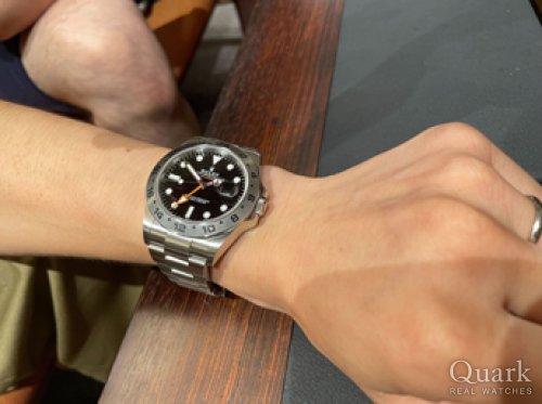 T様、この度はクォーク名古屋栄店をご利用頂き誠にありがとうございます。初めてのROLEX購入という日に立ち合いご案内でき光栄でございます。数本の中から迷われながらも楽しそうに選ばれているお姿に、私自身も楽しんでご案内させて頂きました!選んで頂いたEXPLORERⅡ Ref.226570(黒)は42mmのケース径で存在感がありながらも、T様のご要望通りの着用しやすいデザインですのでオンオフ問わず相棒として着用してくださいね。ブレスレットの洗浄や調整も無料で行わさせて頂いておりますので、お近くに立ち寄られた際にはぜひ遊びにいらしてくださいませ。本日はご購入、誠におめでとうございました。