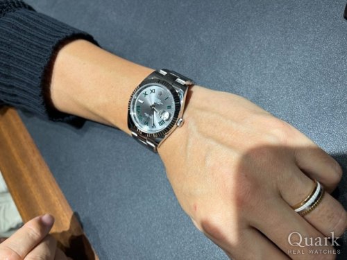K様 この度は数ある時計店からクォーク名古屋駅店をご利用いただき誠にありがとうございます。ご購入いただきました『Ref.126334 スレートローマダイヤル』は2024年式の個体で、コーポレートカラーのグリーンをインデックスに用いた通称 「ウィンブルドンモデル」 でございます。2021年から追加されたダイヤルで今なお、DATEJUSTの中でも人気のダイヤルカラーでございます。またブレス洗浄、タイムチェックも無料で行っておりますので、2021年から追加されたデザインでお近くにお越しの際は遊びにいらしてくださいませ。お使いいただく上で何かご不明な点等ございましたら、また久保までご相談ください。