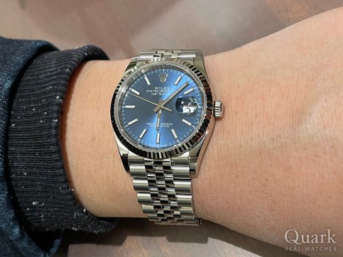 Y様 この度は数ある時計店の中からクォーク上野本店をご利用いただき誠にありがとうございます。ジャケットに合わせたい時計といえばDATEJUSTでございます。お選びになられたブライトブルーはプライベートでも活躍する人気のダイヤルになります。是非、公私ともにご購入いただいたお時計をお楽しみくださいませ。また、ブレスレットの洗浄及び調整も無料で行っておりますので、お近くにお越しの際は遊びにいらしてくださいませ。お使いいただく上で何かご不明な点等ございましたら、また金子までご相談ください。今後とも末永いお付き合いの程よろしくお願いいたします。