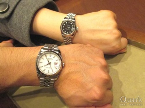S様、この度はクォーク仙台店をご利用頂き、誠にありがとうございます。また、何度もご来店を賜りましたことに重ねて御礼申し上げます。この度は、デイトジャストをペアでご購入ということで、文字盤カラーこそ異なりますが、ジュビリーブレスとホワイトゴールドベゼルの輝きが、上品なペアウォッチを演出してくれることと存じます。特にS様にお選び頂きました、10Pダイヤのブラック文字盤は、シックなブラックにダイヤの輝きが映え、とても素敵です。末長くお使い頂けますよう、精一杯お手伝いをさせて頂きます。今後とも、何卒宜しくお願い申し上げます。 クォーク仙台店 武田
