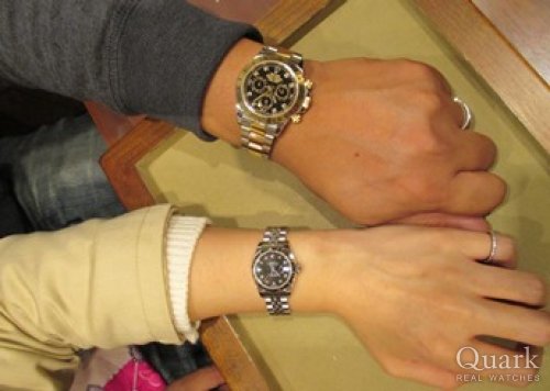 M様 いつもクォーク仙台店をご利用くださいまして誠にありがとうございます。Ref.179174Gは、ホワイトゴールドと天然ダイヤモンドが輝くフェイスが女性らしい上品な感じを与えてくれると人気でございます。ダイヤモンドを引き立ててくれるブラックダイヤルがM様に大変お似合いでございました。ご案内までお時間を頂きまして大変失礼致しました。お二人でロレックス、素敵でございますね。ブラックダイヤルとダイヤモンド、さりげなくお揃いな印象がお二人の仲の良さを感じさせてくれて担当させて頂きました私も思わず嬉しくなってしまいました。年末に買ってあげるという『約束』を守るお二人の愛、羨ましい限りです!!!(笑)これからはロレックスライフをお二人で楽しんで頂けましたら幸いでございます。ご不明な点などございましたらお気軽に高橋までお申し付けくださいませ。もちろん、使い方もM様のお問合せがございましたら、張り切って対応させて頂きますのでご安心ください!ブレス洗浄、サイズ調整を無料で承りますので是非お店に遊びに来てください。今後とも末長いお付き合いの程宜しくお願い申し上げます。