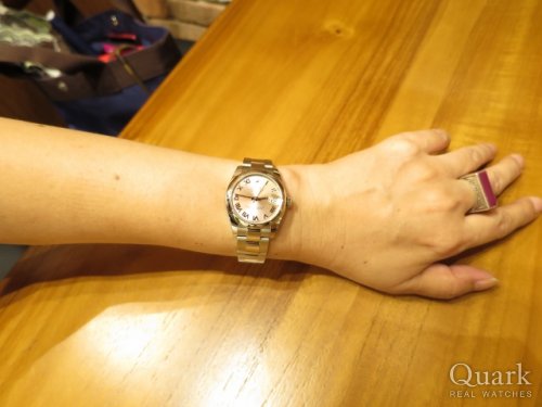 U様 この度は、クォーク神戸店をご利用頂きまして誠に有難うございます。またご購入に際して、何度も弊店へご足労を頂き、重ねてお礼申し上げます。ご希望のモデルをご案内するまでにお時間を頂戴しましたが、無事ご案内することが出来、私も大変嬉しく思っております。お選び頂きましたデイトジャスト ボーイズサイズは、クラシカルでエレガントなデザインが魅力のモデルです。カジュアルからフォーマルまで、様々なスタイルにもフィットし、31mm径ケースが女性の腕をより一層引き立ててくれる事と存じます。更に上品なピンク文字盤が、U様にとてもお似合いでした。是非、末永くご愛用頂ければ幸いです。また、店舗にて時計の簡易メンテナンスも行なっておりますので、いつでもお気軽にお立ち寄り下さい。U様とまたお話出来る事を楽しみにしております! クォーク神戸店 川田