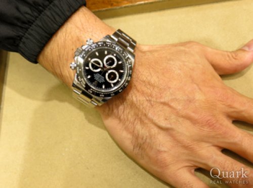 E様 いつもクォーク仙台店をご利用くださいまして誠にありがとうございます。まずは、デイトナGETおめでとうございます!!まさかこんなにも早くE様とまたお会い出来るとは・・・私が驚いちゃいました(笑)。やはりお時計はタイミングが大切でございますね。お問合せが重なっているなか、ご来店日に間に合い、安心致しました。『いつかはデイトナがほしい・・・』とのお声をいただくほどロレックスファン憧れのお時計、早くも手に入れちゃいましたね♪たくさん悩まれた末での一本でございますので、お子様が大きくなるまで・・・、いえ、その先もずっとご愛用いただけましたら幸いでございます。近い将来、ご家族にもその魅力がわかっていただけることを心よりお祈り申し上げます(笑)。引き続きE様のロレックスライフが素敵な時間となりますよう、全力で応援致しますのでお困りの際はいつでもご連絡くださいませ。もちろん、店頭にてブレス洗浄、サイズ調整を無料で承っておりますので次回はぜひお子様と一緒に遊びにきてくださいね☆それではこれからも変わらぬご愛顧を賜りますようよろしくお願い申し上げます。