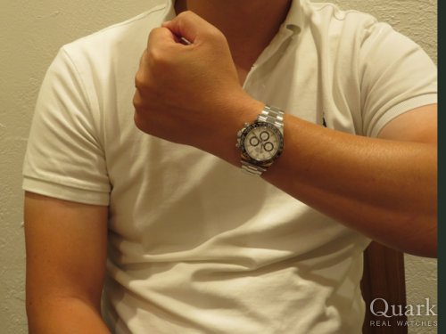 I様 いつもクォーク新宿店をご利用頂き誠にありがとうございます。前回YGコンビのデイトナをご購入頂き今回で2本目のデイトナですね。2016年に発表された新型デイトナRef.116500LNホワイト文字盤は、よりスタイリッシュでスポーティーなデザインがとても魅力的です。未だに流通量が非常に少ない中、良い個体をご案内させて頂けた事を嬉しく思っております。I様の愛車にピッタリなデイトナを末永くご愛用下さい。また、ブレスレットの洗浄や調整なども無料で行っておりますのでお気軽にお立ち寄りください。是非I様の愛車とデイトナのコラボを拝見させて頂きたいです!今後ともクォーク新宿店を宜しくお願い致します。 クォーク新宿店 宮下