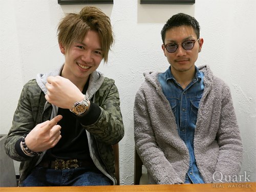 O様 いつもクォーク仙台店をご利用くださいまして誠にありがとうございます。目の前にいくつかのデイトナが並ぶとそれぞれの魅力が伝わってきて決めるまで大変ですね(笑)。ステンレスも素敵でしたが、イエローゴールドに天然ダイヤモンド、とてもお似合いでございますよ。ご夫婦で合わせたイエローゴールドコンビモデルはペアウォッチのようで、まさにお二人の仲の良さを感じさせてくれますね。しばらくはサブマリーナーがいなくて寂しいかと存じますが、その分デイトナを満喫してくださいね♪O様のロレックスコレクションがいつまでも活躍してくれますよう、今後もしっかり対応致しますので、ご不明点などございましたらお気軽にお申し付けくださいませ。次回の金無垢モデルもお電話一本頂けましたら全力でお探し致しますのでご安心くださいませ(笑)!!店頭にてサイズ調整、ブレス洗浄を無料で承っておりますので、またお店に遊びにきてくださいね。それでは今後とも末永いお付き合いの程宜しくお願い申し上げます。
