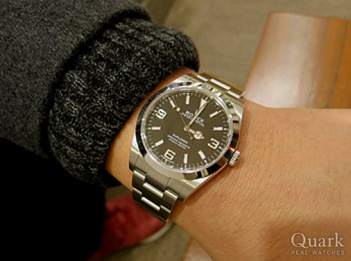 SUBMARINERとEXPLORERIの39mmと36mmで迷いましたが、もともとほしかった36mmのEXPLORERIに決めました。横からのアドバイスもあり購入しました!