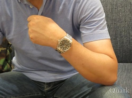 H様 この度はクォーク名古屋店をご利用頂き、誠にありがとう御座います。またご遠方からお越し頂き、重ねて御礼を申し上げます。H様とは同じ世代となり、勝手ながらに親近感を抱いておりました。(笑)ご来店当初は見るだけと仰っていましたが、実物をご覧頂くと購入意欲が沸いてしまいますね。最近ぼ傾向としてケースサイズが大きい御時計が多いですが、小振りなサイズは腕に着け易い為、嫌味が無く幅広いシーンでご愛用頂けると思います。飽きの来ないデザインは、ファーストロレックスに相応しい選択だと感じます。これからはお持ちの御時計と共に使い分けを楽しんで下さいね。今後も御時計の事でご相談等が御座いましたら、私までご連絡して下さい。また栄にお立ち寄りの際は、ブレス洗浄を兼ねて遊びにいらして下さい。またH様にお会い出来る日を楽しみにしております。