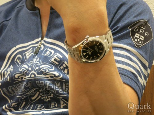 エクスプローラーⅡを息子にあげて、私はデイトジャストを使っていたが、やっぱりスポーツモデルが欲しくなったのでエクスプローラー Iを購入しました。購入時はサブマリーナー・デイトとも迷いましたが、以前のエクスプローラー Iと違い39mmの圧倒的な存在感、シンプルなデザインが私好みなので購入を決めました。