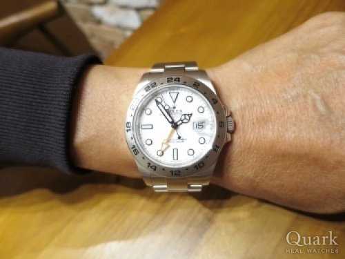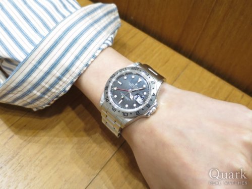I様、いつもクォーク梅田店をご利用頂きまして誠に有難うございます。今回お選び頂きました、エクスプローラーIIはデザイン性は勿論、GMT機能付きの高い実用性も魅力のモデルでございます。以前ご愛用されておりましたデイトジャストとはまた違った雰囲気を楽しんで頂けます。また気になるモデル等ございましたらいつでもご連絡下さいませ。これからもクォーク梅田店を宜しくお願い致します。  クォーク梅田店 坪井