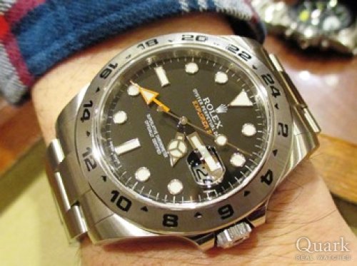 I様 この度はクォーク名古屋店を御利用下さいまして、誠にありがとうございます。現行モデルのエクスプローラーIIは42mmのサイズUPしたケース径と、初代Ref,1655を彷彿とさせるオレンジ色の24時間針が特徴ですね。現行モデル屈指のタフネスウォッチとして人気の時計です。アクティブに御使用頂きたい時計ですね。まだ先のお話になりますが、今後のメンテナンスなどは私共にお任せくださいませ。また時計を見にお立寄り下さいませ。