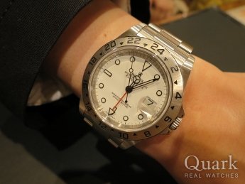 S様 いつもクォーク銀座888店をご利用頂きまして誠にありがとうございます。この度もS様にご納得頂けるコンディション・年式の1本をご紹介でき大変嬉しく思います。エクスプローラーII Ref.16570は男らしいデザインながら、爽やかなホワイト文字盤に鮮やかな赤いGMT針が良いアクセントとなり、非常にデザイン性が高くスタイリッシュな印象を与えてくれる魅力溢れる1本です!!弊社アフターサービスで、前回ご購入のターノグラフ Ref.116264ブルーダイヤルと共にしっかりとバックアップしてまいりますので、引き続き安心してロレックスライフをお楽しみ下さい。それではS様、今後ともクォーク銀座888店を何卒宜しくお願い致します。