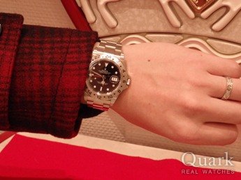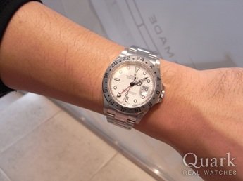 クォークさんでお世話になるのは3回目となります。今回はビジネス用でスーツに合せられる時計が欲しく、軽量ながらも40mmサイズの存在感あるエクスプローラーⅡにしました!白文字盤とは最後まで悩みましたが、黒文字盤の高級感漂う雰囲気が決め手となりました。今持っているターノグラフを白文字盤に変えて使いたいと思います!