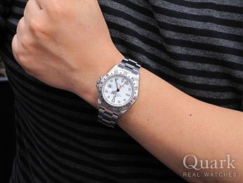 サブマリーナー、エクスプローラー1を持っているので1本ホワイトの文字盤が欲しいと 考えていました。オーソドックスでずっと使えるモデルが好きなのでエクスプローラー2を選びました。