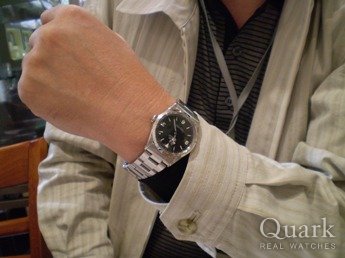以前、クォーク福岡店でデイトナ・ビーチを購入して使用していますが、革ベルトを夏場に使用すると汗ですぐに傷んでしまうので、ミルガウスを追加購入しました。 発売当初は価格に圧倒されて手が出ませんでしたが、デザインやサイズは気に入っていたので、価格が落ち着いた今ならばと思い奮発!夏時計として大活躍してくれています!!