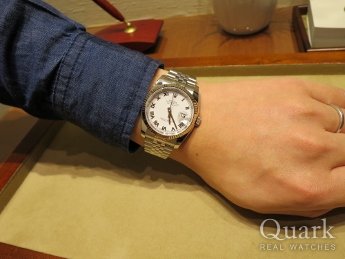あまりゴツゴツした印象がなく、高級感を感じられるホワイトゴールドべゼルのデイトジャスト Ref.116234を選びました。店頭で試着した時に同モデルのブラックローマも良く、迷いましたが、視認性の高さと最初に欲しいと思っていたホワイトローマに決めました。