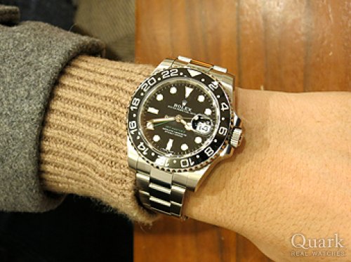 N様 いつも弊社をご利用下さいまして、誠にありがとうございます。今回ご購入下さいました現行型GMT-MASTERIIはブラックべゼルとグリーンカラーの組み合わせにより、落ち着きのあるデザインとなっております。プライベートからビジネスまで幅広く対応可能でございますので末永くご愛用頂けましたら幸いでございます。今後とも何かご相談等ございましたら、お気軽にご連絡下さい。お近くへお越しの際ではぜひお立ち寄り下さいませ。どうぞ宜しくお願い致します。クォーク銀座888店 佐藤