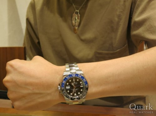 K様 この度はクォーク名古屋店をご利用頂き、誠にありがとう御座います。じっくりと色々なモデルを御試着して頂きましたが、やっぱり憧れだったGMTマスターII 青黒でしたね! GMTマスターII 青黒は、青と黒のツートーンカラーがお洒落で絶大な人気を獲得しています。以外と合わせ易い色合いとなりますので、幅広いシーンでご愛用頂ければ幸いです。その他のグリーンサブマリーナーやエアキングも魅力的でしたが・・。次回の候補モデルですね。その際はご連絡をお待ちしております!また楽しい時間をありがとう御座いました。栄にお越しの際は、ブレス洗浄を兼ねて遊びにいらして下さい。またK様にお会い出来る日を楽しみにしております。