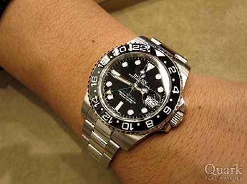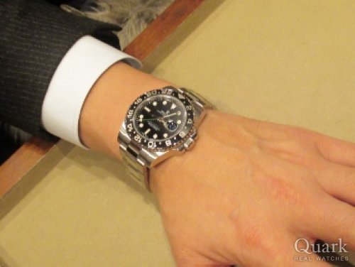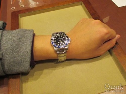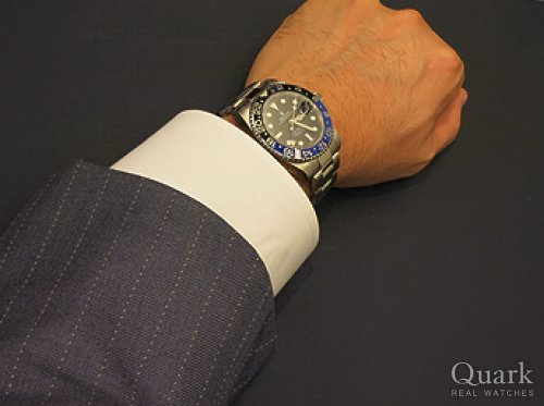 昔からGMT-MASTERが好きで、今回貯金が貯まったからRef.116710BLNRを購入。色々な店のHPで商品を探したが、あまり置いてある店が無かったのと、検索TOPにクォークさんがでてきたので探し易かった。