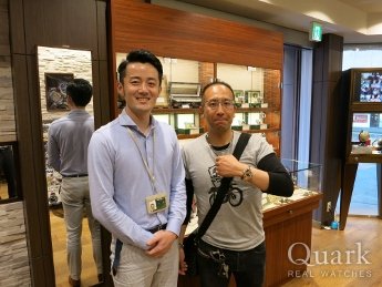 T様 台風一過でこの夏一番の蒸し暑さの中、クォーク広島店へお越しくださり誠に有難うございました。空調の利いた店内で日の大半を過ごす私からすると湿度90%気温30度の屋外は蒸し風呂のようです。そんな暑くて外出が憂鬱になりそうな日が2ヶ月くらいは続くと思いますが、新たな相棒を手に入れられたT様は暑さも吹っ飛ぶのではないかと想像しております。ピンクゴールドはイエローゴールドほど派手さはないですが上品な高級感が漂っています。ピンクゴールドとブラックダイヤルの相性もよく末永くご愛用頂けると確信しております。前回対応致しました西尾に変わり、私、岩田がT様のロレックスライフのお手伝いをさせて頂ければと思っております。今後ともクォーク広島店を宜しくお願い致します。 クォーク広島店 岩田