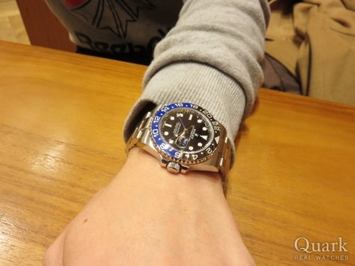 M様、この度はクォーク神戸店をご利用頂きまして誠に有難うございました。ご購入頂きましたモデル、GMTマスターII Ref.116710BLNRは、青黒のベゼルがポイントの現行モデルです。ここ最近さらに注目度が増し、プレミアムになっております。高級感とデザイン性のバランスが絶妙で何にでも合わせて頂けます。M様にとてもお似合いでございました。末永くご愛用頂けましたら幸いです。今後もご指名頂けるようしっかりとサポートさせて頂きますので、何かご要望などございましたら私井内までお申し付け下さいませ。また、ブレスレットの洗浄及び調整も無料で行っておりますので、お近くに来られた際には是非遊びにいらして下さい。心よりお待ちしております。                                クォーク神戸店 井内