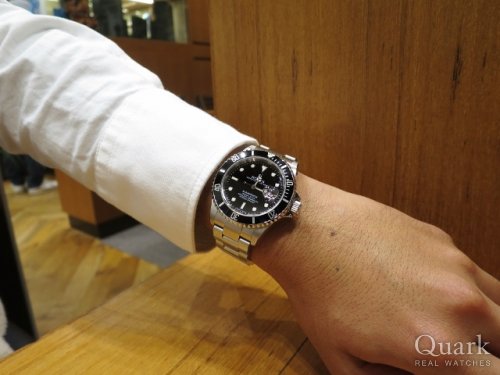 T様 いつも、クォーク神戸店をご利用頂き誠に有難う御座います。909の日に心斎橋店にも足を運んで頂き感謝申し上げます。116520黒白、116500LN白に続いての購入、羨ましい限りです!お選び頂いた、サブマリーナーの16800フチなし文字盤はサファイアクリスタル風防ですが、ヴィンテージ感漂う雰囲気が最大の魅力です。T様の雰囲気にもバッチリ似合っておりました!T様の数あるコレクションの1つとして、末永くご愛用頂ければ幸いでございます。アフターサービスとして、ブレスレットの無料洗浄も行っていますので三宮に来られた際は是非お立ち寄り下さいませ。また何かご不明な点などありましたら、お気軽にお問合せ下さいませ。今後ともクォーク神戸店を何卒宜しくお願い申し上げます。クォーク神戸店 増田