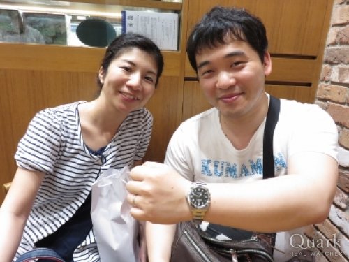 F様、この度はクォーク神戸店をご利用頂きまして誠に有難うございます。暑い中、ご来店頂き感謝申し上げます。奥様との素敵なツーショットですね!お選び頂いたエクスプローラーIは、昔から変わらない人気のデザインです。F様は、お仕事でスーツを着ることが多いということで、こちらのモデルでしたら間違いなく良く似合います!末永くご使用頂ければ、幸いでございます。ブレス洗浄も承っておりますので、お気軽にお申し付け下さいませ。またのご来店心よりお待ちしております。 クォーク神戸店 増田