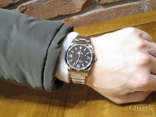 N様、この度はクォーク神戸店をご利用頂きまして誠に有難うございました。シンプルなデザインのエクスプローラーは、どのような場面でも合わせて頂ける万能モデルです。以前から探されていたとのことですが、2016年に出たばかりで、店頭でまだまだ見かける機会が少ない夜光付き新ダイヤルを、タイミング良く見つけられご購入に結びついた、その出会いに私も大変嬉しく思っております。お時計を着けられた際のN様の笑顔がとても印象に残っております。末永くご愛用頂けましたら幸いでございます。今後もご指名頂けるようしっかりご対応して参りますので、今後共クォーク神戸店を宜しくお願い致します。また、ブレスレットの洗浄及び調整なども無料で行っておりますので、近くに来られた際は是非遊びにいらして下さい。心よりお待ちしております。 クォーク神戸店 井内