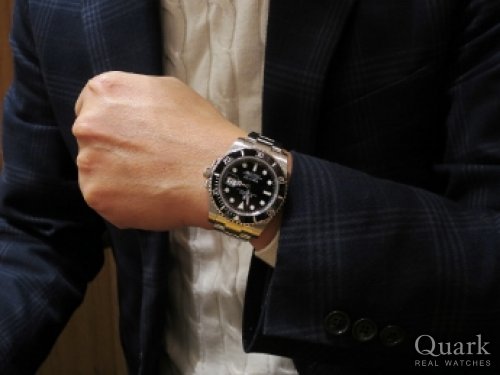 F様、この度はクォーク神戸店をご利用頂きまして誠に有難うございました。また、ご遠方からご来店頂き有難うございます。ご購入頂きましたモデルは、イエローゴールドとステンレスのコンビモデルで、腕元をゴージャスに演出してくれます。前モデルからベゼルのデザインが変わり、以前よりスポーティーになりバランスもとても良くなっています。また、黒文字盤と8Pダイヤモンドの相性も抜群です。末永くご愛用頂けましたら幸いでございます。今後もご指名頂けるようしっかりご対応して参りますので、今後共クォーク神戸店を宜しくお願い致します。また、ブレスレットの洗浄及び調整なども無料で行っておりますので、近くに来られた際は是非遊びにいらして下さい。心よりお待ちしております。 クォーク神戸店 井内