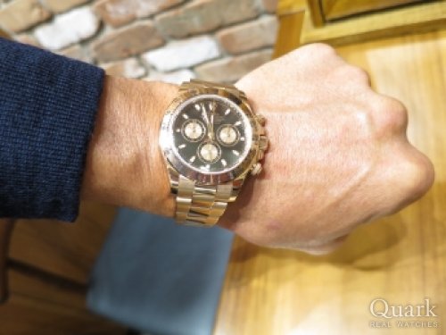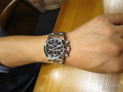 D様 この度はクォーク神戸店をご利用頂き、誠にありがとうございます。今回お選び頂きましたデイトナ Ref.116520 ブラック文字盤は、デザイン性、ステイタス性、実用性、資産価値全てが揃った大人気スポーツモデルです。ご来店時、サブマリーナーとも迷われておりましたが、以前からD様が所望されていたモデルであり、生産終了が発表され、今後の動向が非常に注目される1本ですので、今回の選択はD様にとってベストではないかと思います!末永くご愛用頂けますよう、D様のロレックスライフをしっかりサポートさせて頂きますので、何なりと御遠慮なくご用命下さいませ。お近くにお越しの際は、是非遊びにいらしてくださいませ。またのご来店を心よりお待ち致しております。 クォーク神戸店 川田