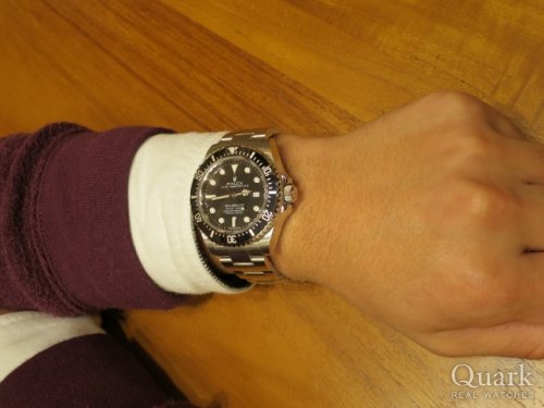 K様 この度は、弊店をご利用頂きまして誠に有難うございます。ご購入日当日は、ご対応が出来ず、誠に申し訳ございませんでした。ずっと所望されていたDEEP SEAの着け心地は如何でしょうか?当初ご相談を頂いてから、購入に至るまでの決断がとても早く、K様のDEEP SEAへの想いの強さを非常に感じました。サイズ・ボリューム等、全てにおいて他のモデルを圧倒する、まさにオーバースペックなDEEP SEAは、本当に男らしい1本だと思います!K様の逞しい腕にとてもお似合いです!!是非、様々なシーンでご愛用頂き、末永くご愛用頂ければ幸いです。また、店舗にて時計の簡易メンテナンスも行なっておりますので、いつでもお気軽にお立ち寄り下さい。K様のご来店を心よりお待ち致しております! クォーク神戸店 川田・三瀬