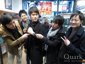 I様 この度は弊店をご利用くださいまして誠にありがとうございます。ご友人の皆様もHP掲載にご協力頂きまして、重ねてお礼申し上げます。初め、サブマリーナー以外のモデルも少し悩まれておりましたが、実際に腕に着けられてからの決断はとても早かったですね。ご案内させて頂いた私も、K様にはサブマリーナーが似合うと思っていたので、選ばれた時は「やっぱり」と思ってしまいました(笑)。シンプルなデザインで、様々なシーンで着用出来るモデルかと存じますので、是非末永くご愛用頂ければ幸いです。ご遠方の為、難しいかもしれませんが、また神戸へお越しの際は、弊店へ遊びにいらしてくださいませ。K様、ご友人の皆様のご来店心よりお待ちしております。 クォーク神戸店 川田