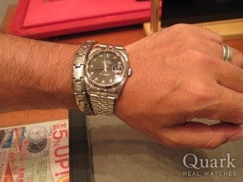 以前からサブマリーナーが欲しくて検討しており、時計雑誌にクォークが載っているのを見て『価格面』と『保証面』が納得が出来る内容だったので、一番近くの神戸店で購入を決めました。