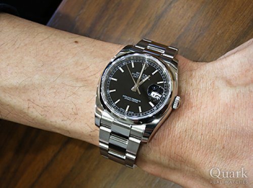 N様、この度はクォークなんば店をご利用頂きまして誠に有難うございました。Ref.116234Gは王道モデルの一つです。黒文字盤はダイヤが映えますので存在感も抜群です。N様の仰る通りコンピューター文字盤より視認性が良いのも間違いないです!デイトジャストは不変のデザインで愛されるモデルですので今後も末永くご使用頂けると思います。また大阪にお越しの際はブレス洗浄などにお立ち寄り下さい。お待ち致しております。   クォークなんば店 佐野