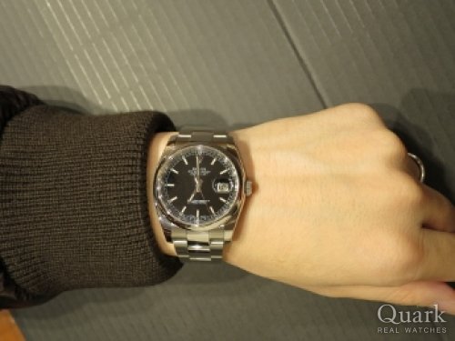 いつもクォーク横浜店をご愛顧頂きまして誠にありがとうございます。シンプルなステンレス製のデイトジャストはさり気なくてカッコイイですよね。デイト機能も付いておりますし、お持ちの39ミリのエクスプローラーⅠとも変化をつけられるので、とても良いご選択だったと思います。何より、N様にとても似合っておりました!お許しを頂いた奥様の寛大さには私も感動しました。新しいロレックスを着けて、益々お仕事がんばって、奥様に恩返ししてあげて下さいね☆ 今後ともブレス洗浄等でお会い出来る日を楽しみにしております。またいつでもお越し下さいませ。 クォーク横浜店 長本