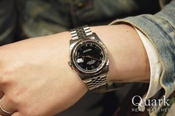 最初からブラック文字盤、ローマ数字と決めていて、最後はブレスの雰囲気で5連のタイプか3連のタイプで悩みましたが、やっぱり最初に良いと思ったシンプルでかっこいい5連のタイプのデザインが気に入ったのでこれを購入しました。