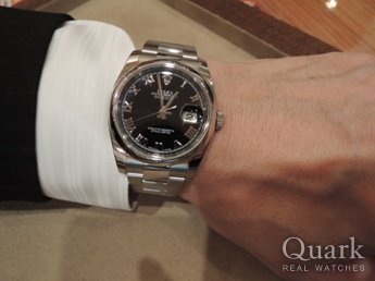 サブマリーナーかデイトジャストか迷っていました。試着してケースの大きさやシンプルなデザインが後押しになり購入を決めました。