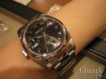 以前にクォーク池袋店を利用して以来、頻繁にホームページをチェックさせて頂いております。 今回は仕事メインで使えるデイトジャストのホワイトローマダイヤルが欲しくて探していました。 その時、たまたま渋谷店ブログに掲載されていたグレーローマダイヤルのデイトジャストが目に止まり、ステンレスとの色合いがマッチした綺麗な雰囲気がとても気に入り購入を決めました。 ブレスレットとベゼルのデザインが落ち着いている点や、ケースのサイズ感、程良い重量感はスーツに合わせて使うにあたりとても満足できる1本です。 また機会がありましたらぜひともお願いします。