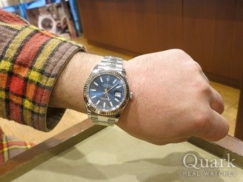 W様、この度はクォーク仙台店をご利用頂き、誠にありがとうございます。また、遠方より何度もご来店を賜りましたこと、重ねて御礼申し上げます。カジュアルな印象のGMT-MASTERII赤青ベゼルと、かなり迷われた末にお決め頂きましたデイトジャストIIブルーダイヤルは、シーンを選ばずお着け頂けるデザインでありながら、41mmのビッグケースと珍しいブルーのダイヤルが目を惹き、ベゼルのホワイトゴールドがラグジュアリー感を演出する魅力的なモデルでございます。W様のがっしりした腕元に映え、大変お似合いでした。悩み抜いた上でお選び頂いたお時計を、末長くお使い頂けますよう、精一杯サポートさせて頂きます。また、二本目のモデル選びも微力ながらお手伝いができれば幸いでございます。今後とも、何卒宜しくお願い申し上げます。