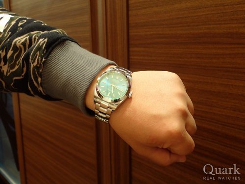 H様 この度は弊社をご利用頂き誠にありがとうございます。お選び頂いたモデルは一味違った高級感を存分に堪能できますので人と被らず末永くご愛用頂けること間違い無しの一本ですね。H様の腕に抜群にフィットしており大変お似合いでございます。ブレスレット洗浄等また近くにお越しの際にお時間ございましたらお立ち寄り下さいませ。今後共クォーク梅田店を宜しくお願い申し上げます。 クォーク梅田店 羽場