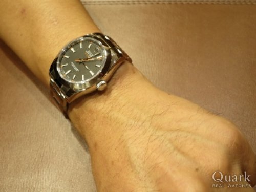 H様 先日は誠に有難う御座いました。気に入って頂けるモデルをご案内でき、嬉しく思います。通常のブラックは流通量も少なく、ここ最近人気も高くなってきておりますし、今回は非常に良い時期だったと思います。また、ブレスの洗浄などお気軽にいつでもお持ち下さいませ。クォーク梅田店 店長 宮崎