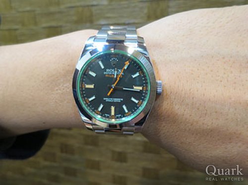 Y様 この度はクォーク名古屋店をご利用頂き、誠にありがとうございます。Y様の即決にはとても驚きましたよ。今回、お選びになったミルガウス(Ref,116400GV)は2014年バーゼルワールド発表で青文字盤の登場を機に再注目されているモデルです。グリーンガラスにオレンジのイナズマの針はロレックスの中でも郡を抜いてのお洒落な時計になります。これから始まるロレックスライフを存分に楽しんで頂けたら幸いです。今後とも、しっかりとサポートさせて頂きますので、何かご不明な点等がございましたらお気軽にご相談下さい。また、栄にお越しの際はブレス洗浄を兼ねてT様と一緒に遊びに来て下さいね。