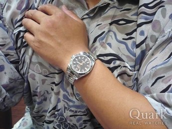以前、クォーク福岡店でデイトナ・ビーチを購入して使用していますが、革ベルトを夏場に使用すると汗ですぐに傷んでしまうので、ミルガウスを追加購入しました。 発売当初は価格に圧倒されて手が出ませんでしたが、デザインやサイズは気に入っていたので、価格が落ち着いた今ならばと思い奮発!夏時計として大活躍してくれています!!