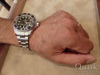 H様 日頃より私共クォークをご利用頂き、誠に有難う御座います。この度の新型シードゥエラーは、バーゼルでの発表から僅かな期間で市場に出回り、私共も驚いています。H様の周りでも、お持ちの方は殆どいらっしゃらないかと思いますので、いち早く手にする喜びも楽しんでください。新型シードゥエラーは旧型と比較すると、様々な面で変更があり、進化が感じられますね。サイクロップレンズの無いシャープなデザインや、小さい部分ですが、「S」の書体も格好良かったです。H様が仰いました通り、スーツに合わせるには最高の1本かと思います。早速、月曜日からご愛用頂けましたら幸いです。また、ウォッチケースに並んだコレクションのお写真も拝見させて頂き、有り難う御座いました。ため息の出る、見応えのあるお写真でした。またいろいろとお話しさせて頂けましたら嬉しく思います。お時間が御座いましたら、お気軽にお立ち寄りください。今後とも、どうぞ、宜しくお願い致します。 クォーク仙台店麻生
